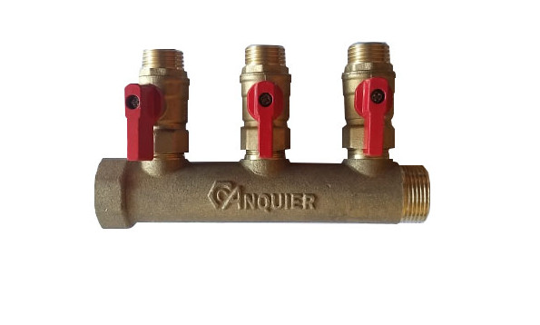 Collecteur laiton Mâle Femelle 3/4'' avec mini vanne collée 1/2'' Anquier